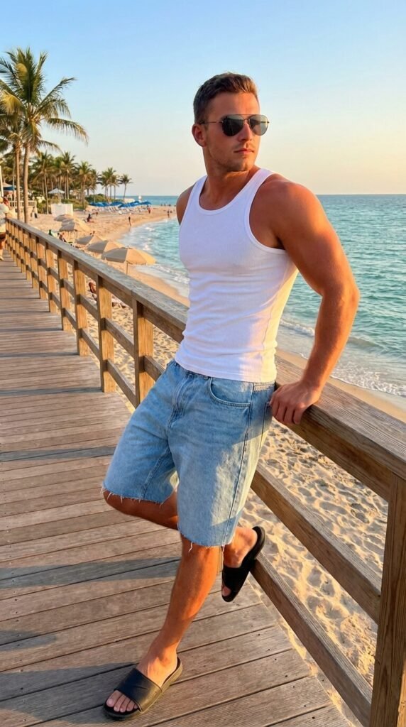 Sporty sandals, slides, or breathable mesh sneakers are the perfect footwear choice. Don’t forget a pair of cool sunglasses and maybe a simple drawstring backpack for essentials. This outfit is designed for beach days, hiking light trails, or any spontaneous summer adventure. It’s about feeling free and ready for anything.