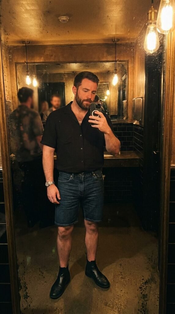 The trick here is to go for darker, cleaner washes – think deep indigo or jet black jorts with no rips or distressing. Pair them with a fitted, dark-colored short-sleeve button-down or a sleek, high-quality knit polo shirt. Texture can play a big role here, so consider a subtle pattern or a luxurious fabric.