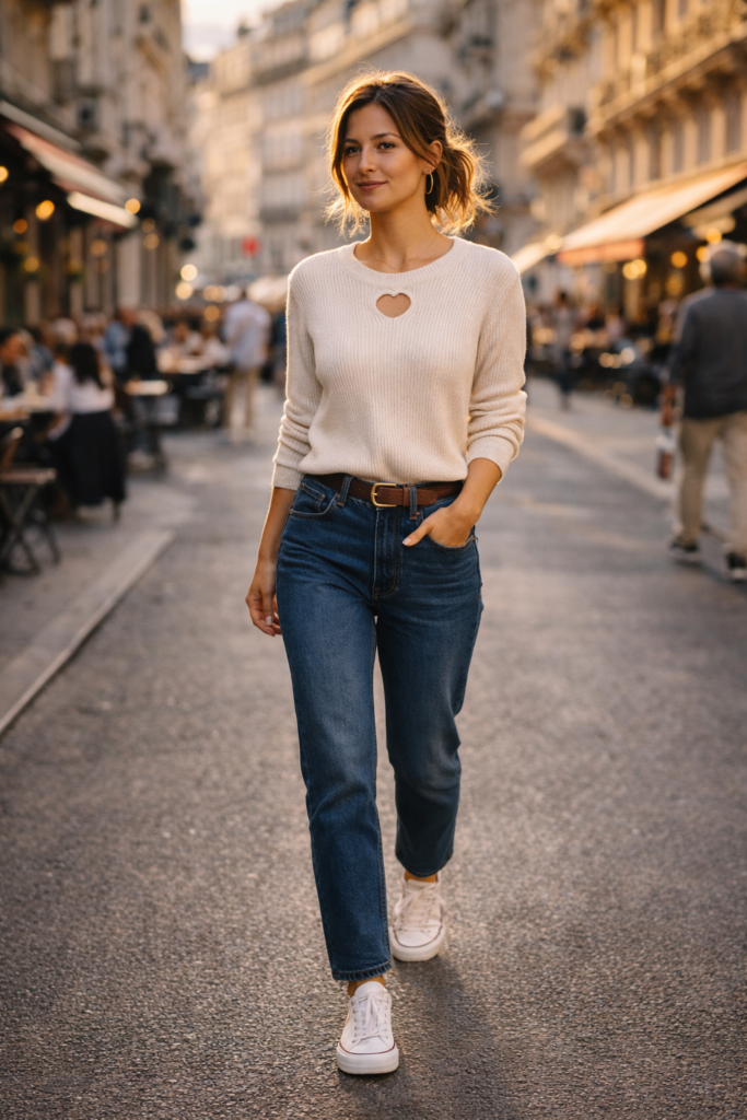 This Valentine’s Day, shed the pressure and embrace the joy of dressing for yourself. Whether it’s the subtle romance of a heart-cutout knit, the polished appeal of elevated denim, a playful pop of pink, or the edgy charm of sneakers and a skirt, these casual street style outfits for women are designed for real life, real comfort, and real style in 2026.