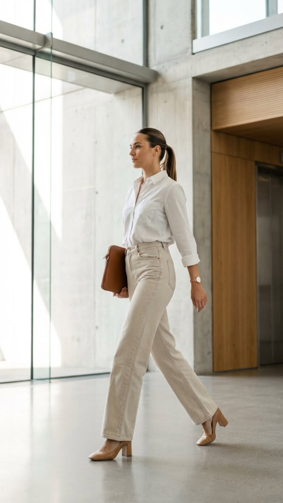 Block heels are the ultimate comfortable yet stylish choice here. They provide height and polish without the pain of a stiletto. A sophisticated crossbody bag completes this guide to professional ease.