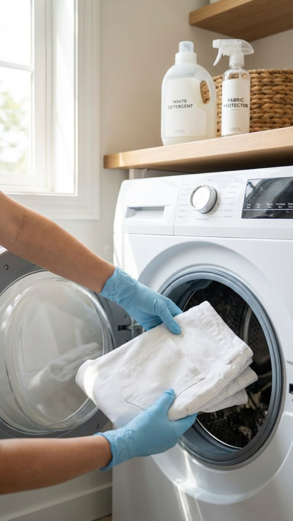 - **Pre-Treat & Protect:** Before wearing, consider spraying your white denim with a fabric protector. This creates a barrier against spills and splashes.