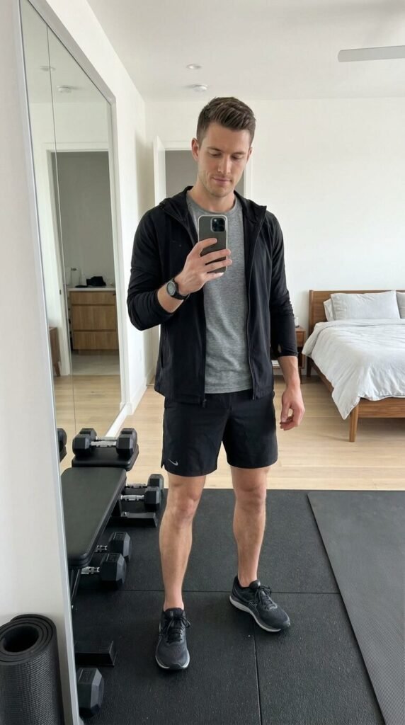 Choose a pair of performance-fabric jorts or classic denim jorts with a slightly looser fit. Combine them with a breathable athletic top – a moisture-wicking t-shirt or a stylish performance polo. Layer with a lightweight hoodie or a track jacket, especially for cooler mornings or evenings. Pair with your favorite athletic sneakers, and don’t forget some cool crew socks. A sporty watch and a durable backpack complete this functional and fashionable look.